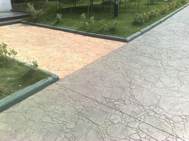 2、用該硬化劑材料制作的壓模地坪具有耐磨、防滑、抗凍、不易起塵、易清潔、高強度、耐沖擊、且色彩和款式方面有廣泛的選擇性、成本低和綠色環保等特點,是目前園林、市政、停車場、公園小道、商業和文化設施領域的理想選擇。