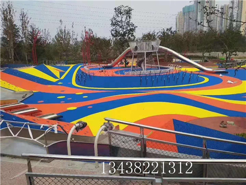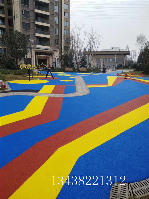 基礎構成:三元乙丙黑顆粒層(10mm)+EPDM噴涂漿料面層(3mm )或EPDM彩色顆料(板壓)